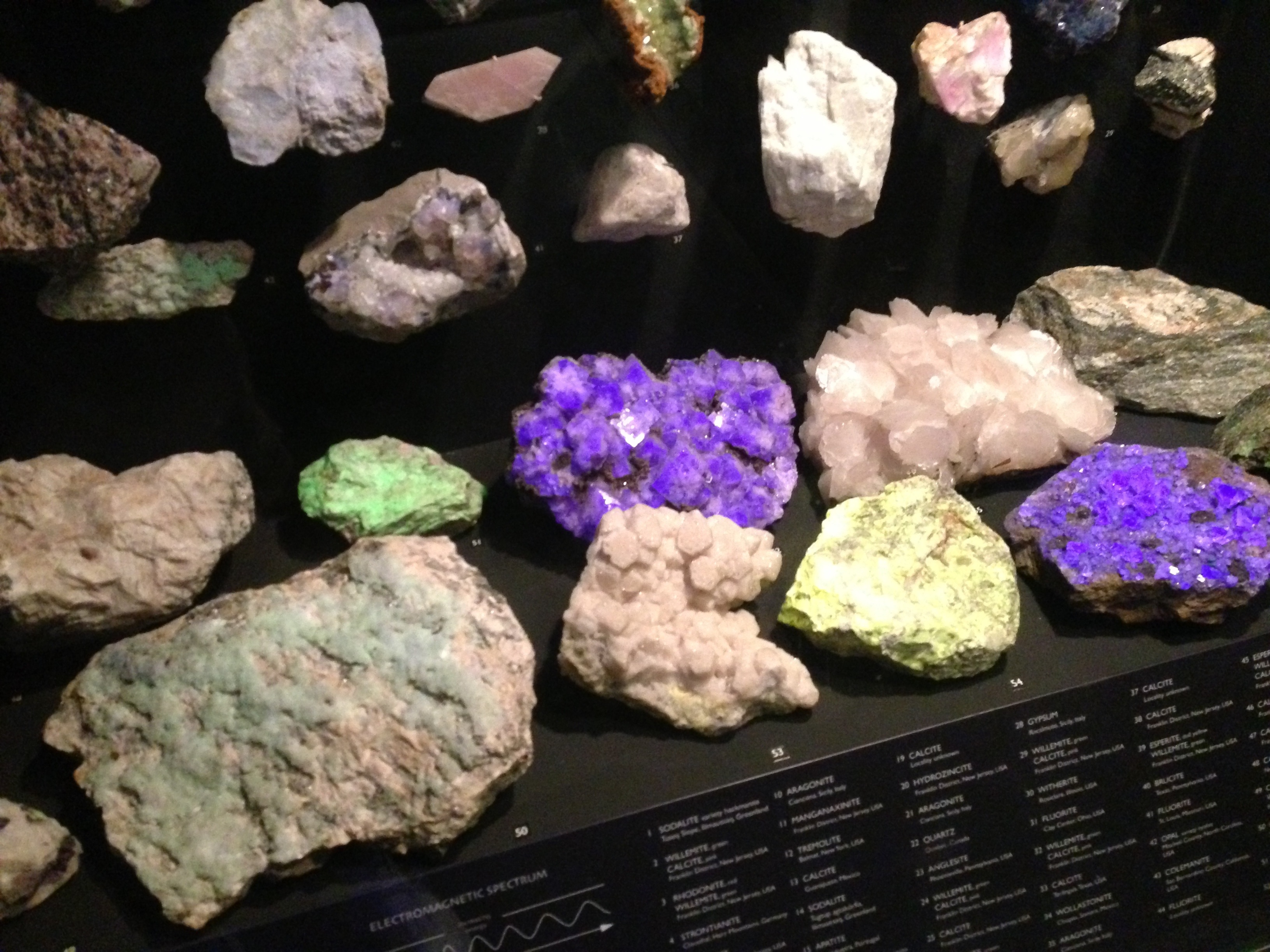 The same rocks, viewed under white light (top) and ultraviolet light (bottom).