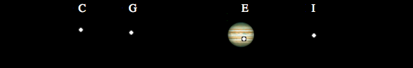 As Winter turned to Spring here in Eastern Massachusetts, tonight’s sky was spectacular (the image above is a fairly good approximation). At about 9 o’clock facing West, there was an amazing view of Orion looming in the middle of the sky, with Canis Major following close on his heels. Up and to the right was Taurus, and further on, the Pleiades. Directly above Orion, Jupiter shone brightly in the middle of Gemini. Over my left shoulder was Leo, and directly behind me was the Big Dipper (or Ursa Major, if you prefer). The stars were especially clear and bright with a dark background sky. Through a 10×50 binoculars, the Pleiades cluster looked like 7 scattered diamonds on sparkling velvet. The individual stars Betelgeuse and Aldebaran were bright orange, and Sirius and Rigel cold blue. Orion’s belt and sword, including the Orion Nebula, were crystal clear (though not nearly as colorful as in all the photographs you see online). Even through my binoculars, I could make out two of Jupiter’s moons, and when I got out my 70mm telescope Calisto, Ganymede, and Io stretched out like little jewels on both sides of the planet’s striped disk. Apparently, Europa was in front of Jupiter at the time: