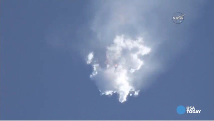 Today’s launch of a Dragon cargo capsule full of supplies for the International Space Station did not go well. The Falcon 9 rocket exploded shortly before second stage ignition. Video clip here.