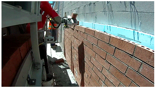 In this human-robot team, the robot is responsible for the more rote tasks: picking up bricks, applying mortar, and placing them in their designated location. A human handles the more nuanced activities, like setting up the worksite, laying bricks in tricky areas, such as corners, and handling aesthetic details, like cleaning up excess mortar.
